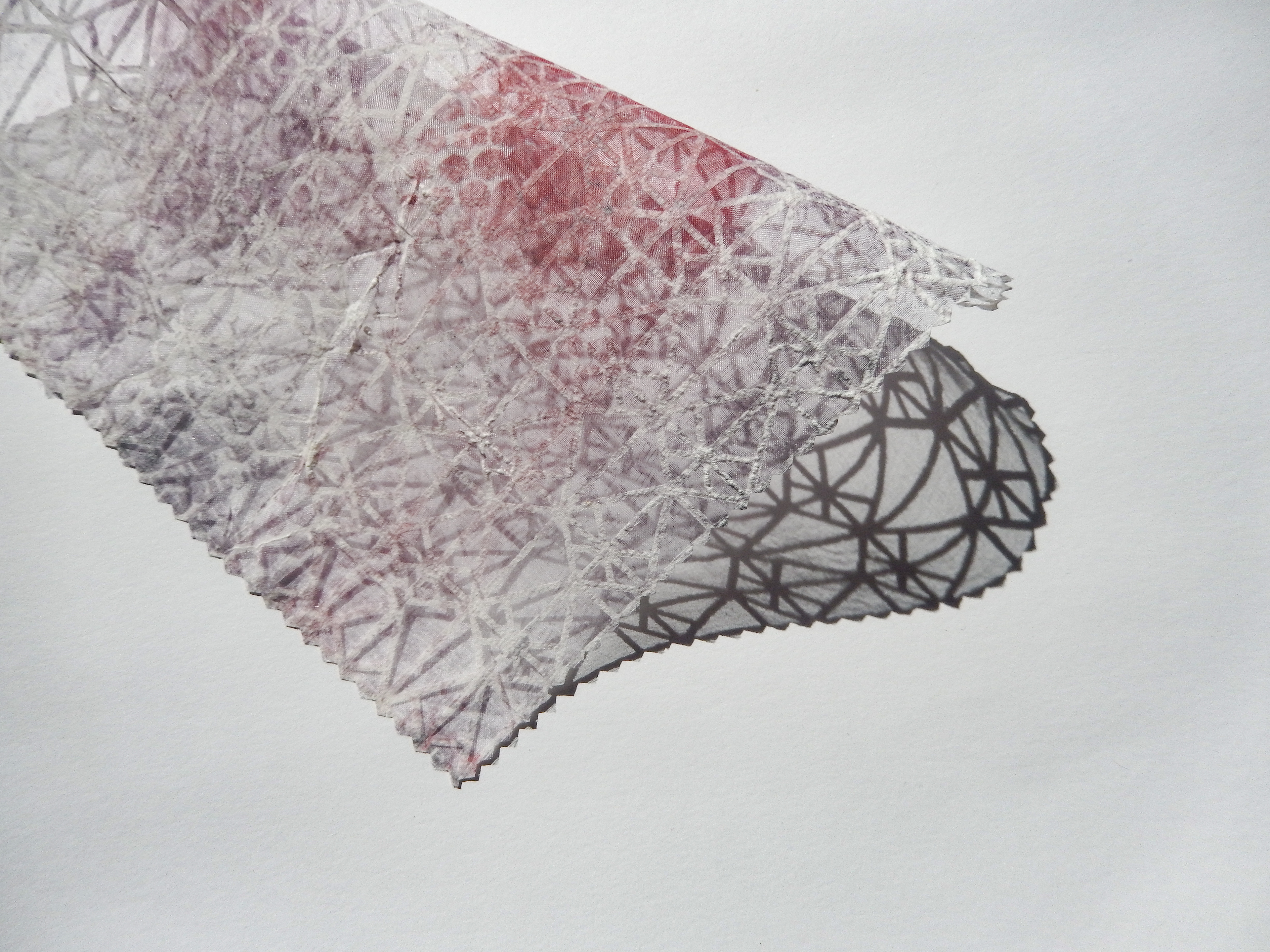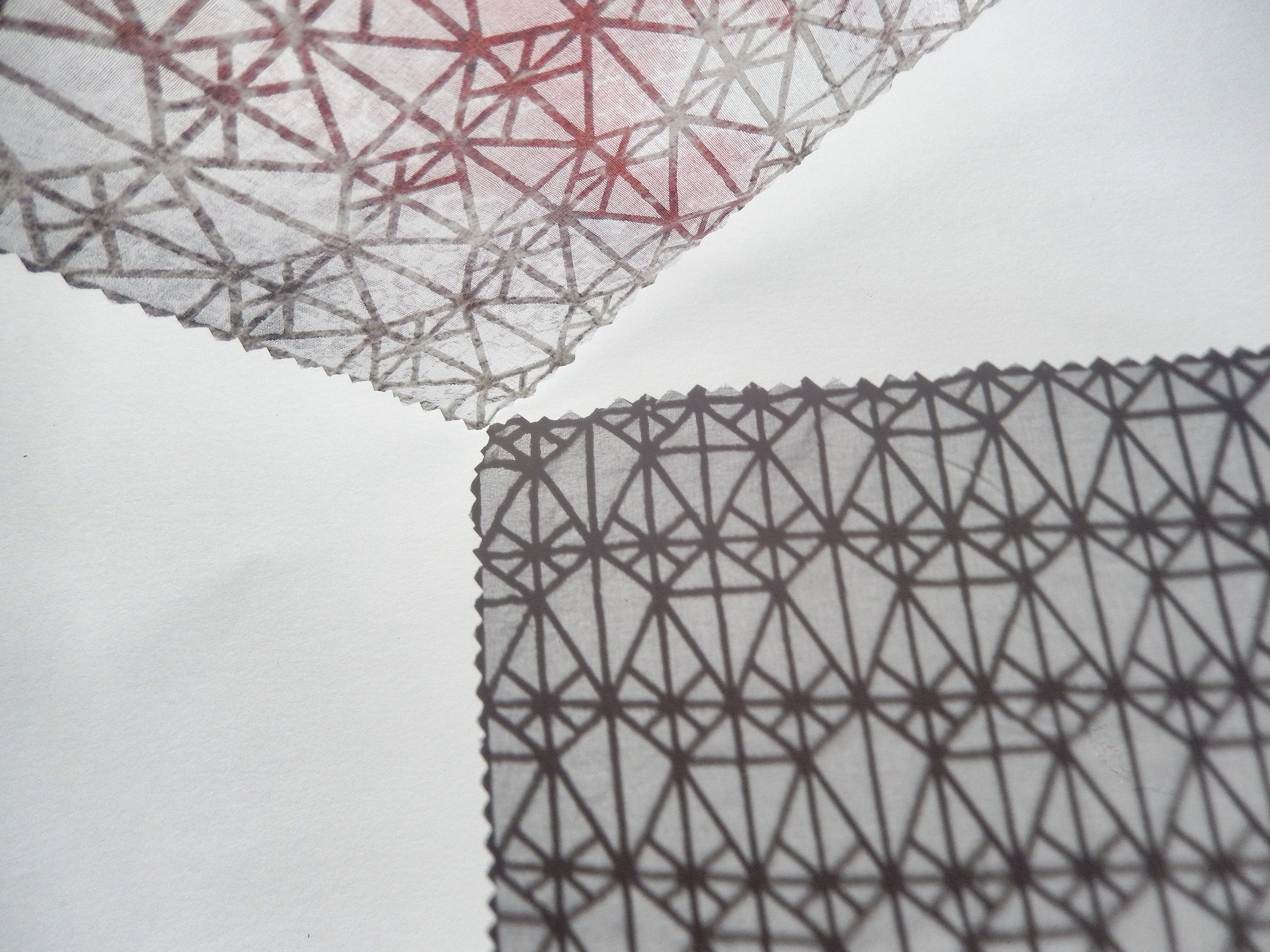 Techniques et matériaux : Sérigraphie en relief et sublimation sur organza de soie